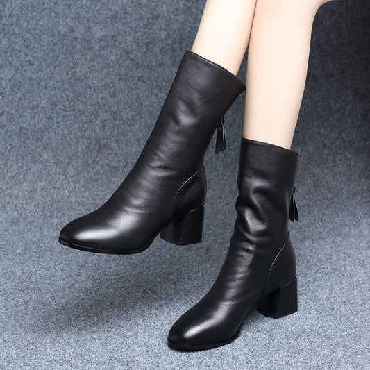 botas de cuero de mujer de otoño