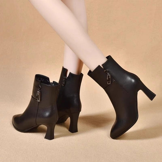 Zapatos de piel sencillos y versátiles con tacón grueso