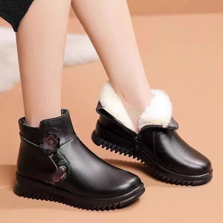 Botas de cuero retro de punta redonda