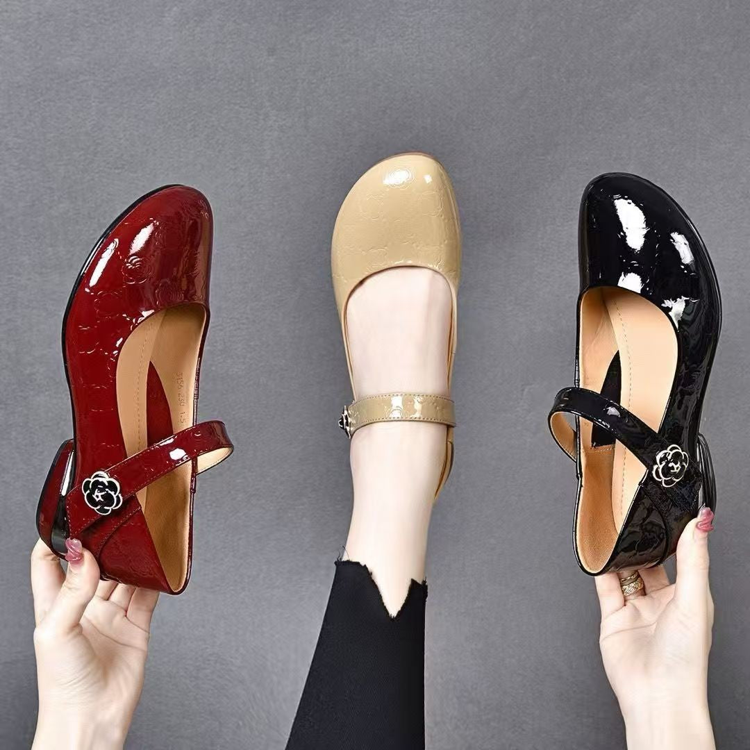 Zapatos suaves de charol con punta redonda